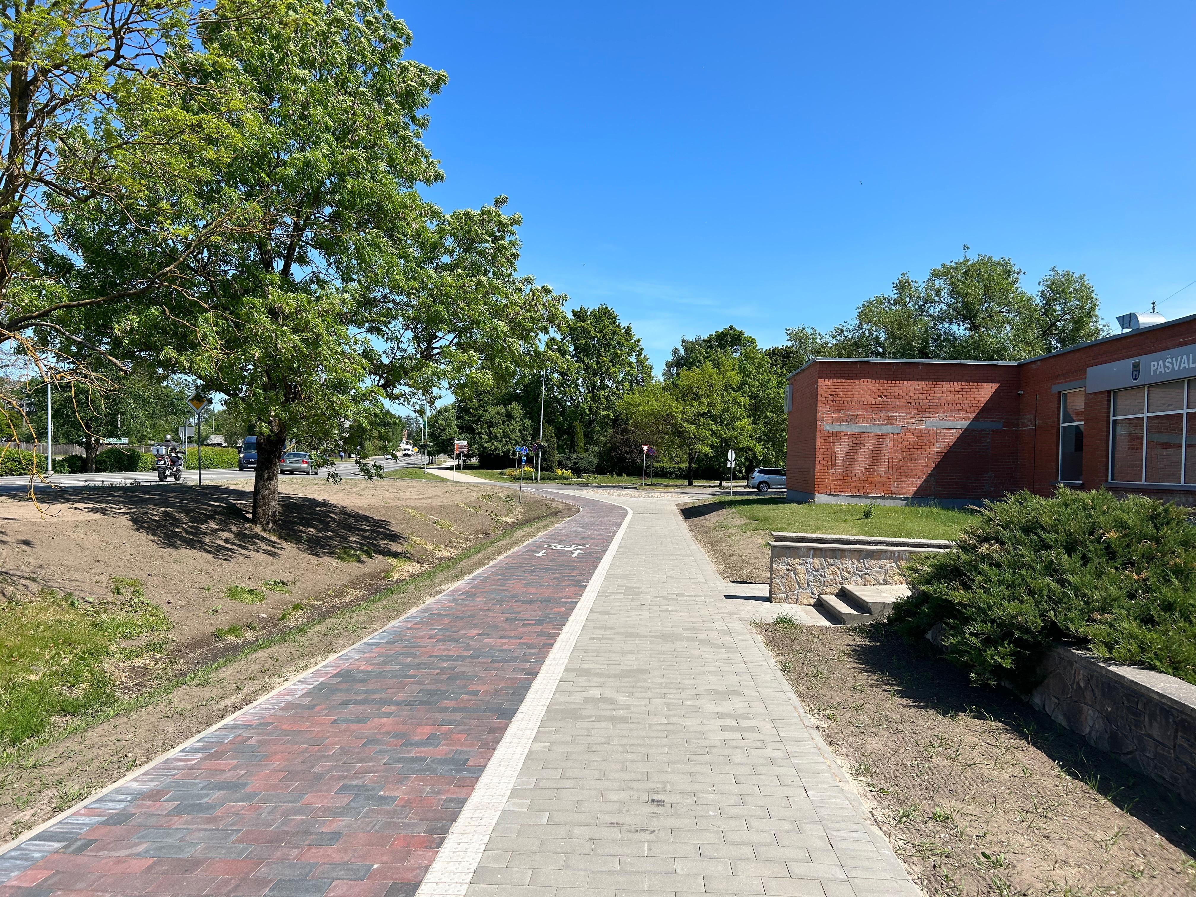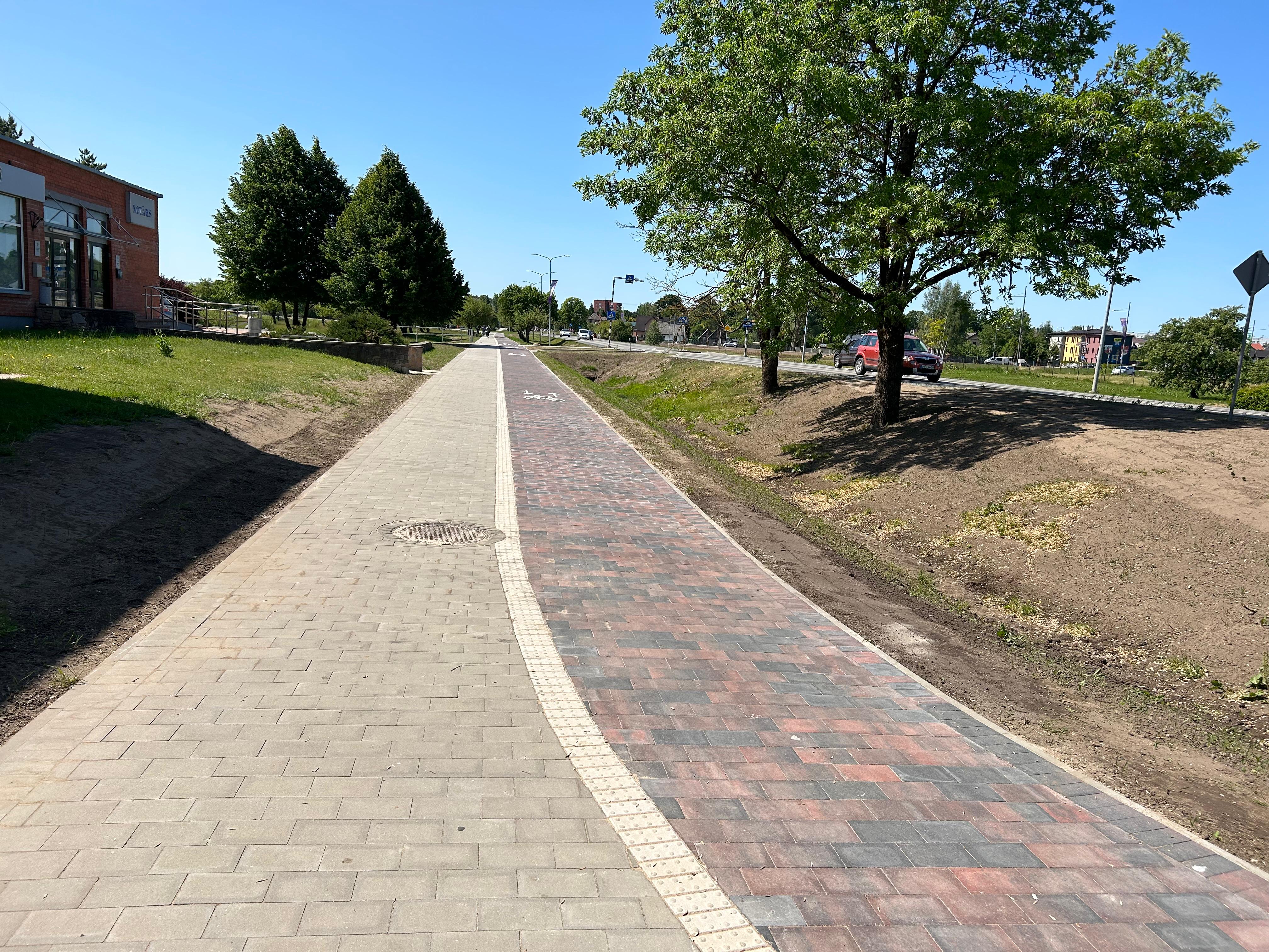 Route length of Zvaigžņu Street: 207 m; Route length of Rīga Street: 145 m; Installation of the lighting network (total cable length – 1136 m); Pavement restoration on Rīga Street (construction type – reconstruction) – route length 1310 m; Installation of concrete paving stones: 2406 m².